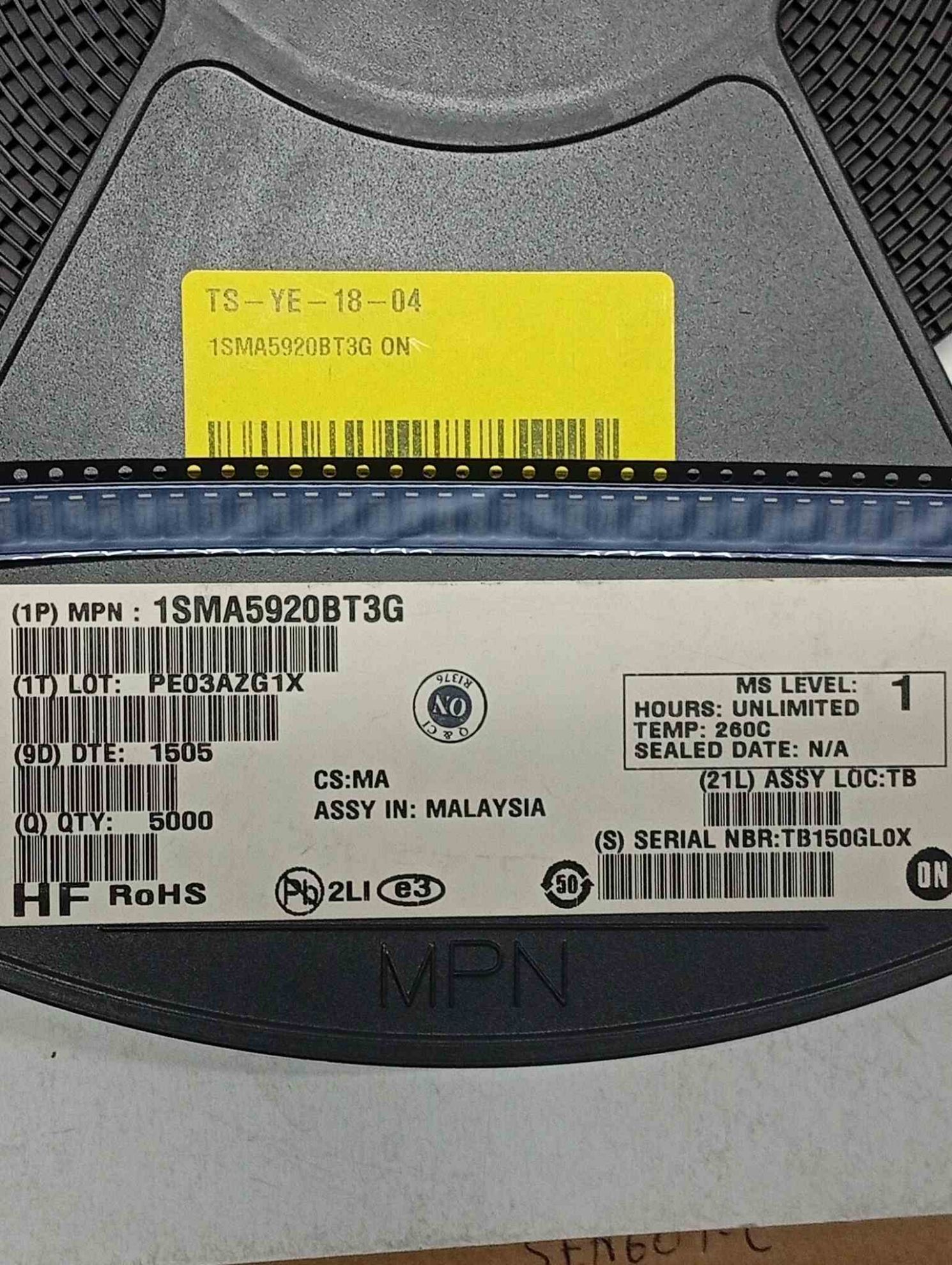 1SMA5920BT3G ON Zener Diode SMA 1.5W 6.2V TR