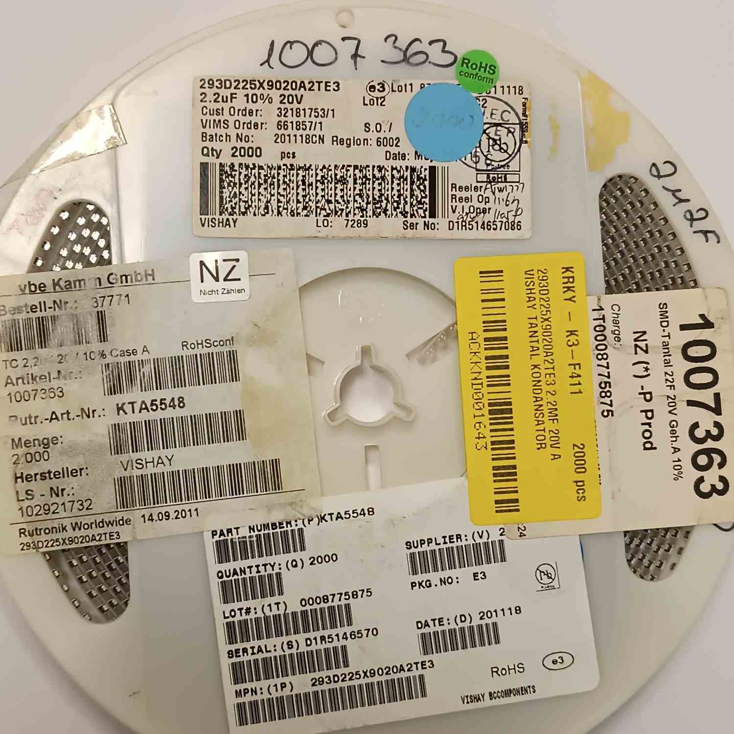 293D225X9020A2TE3 2.2MF 20V A VISHAY TANTAL KONDANSATÖR