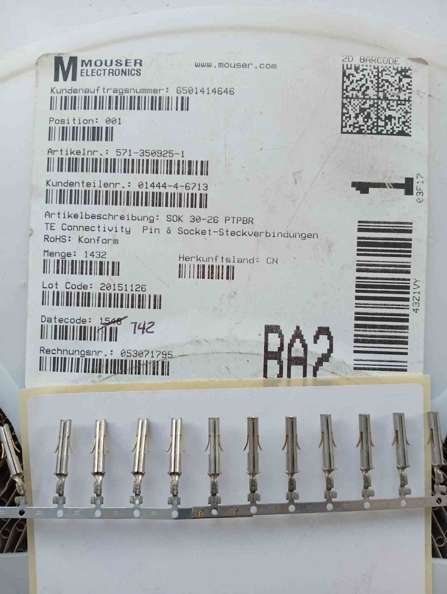 571-350925-1 TEL SOCKET MOUSER SOKET