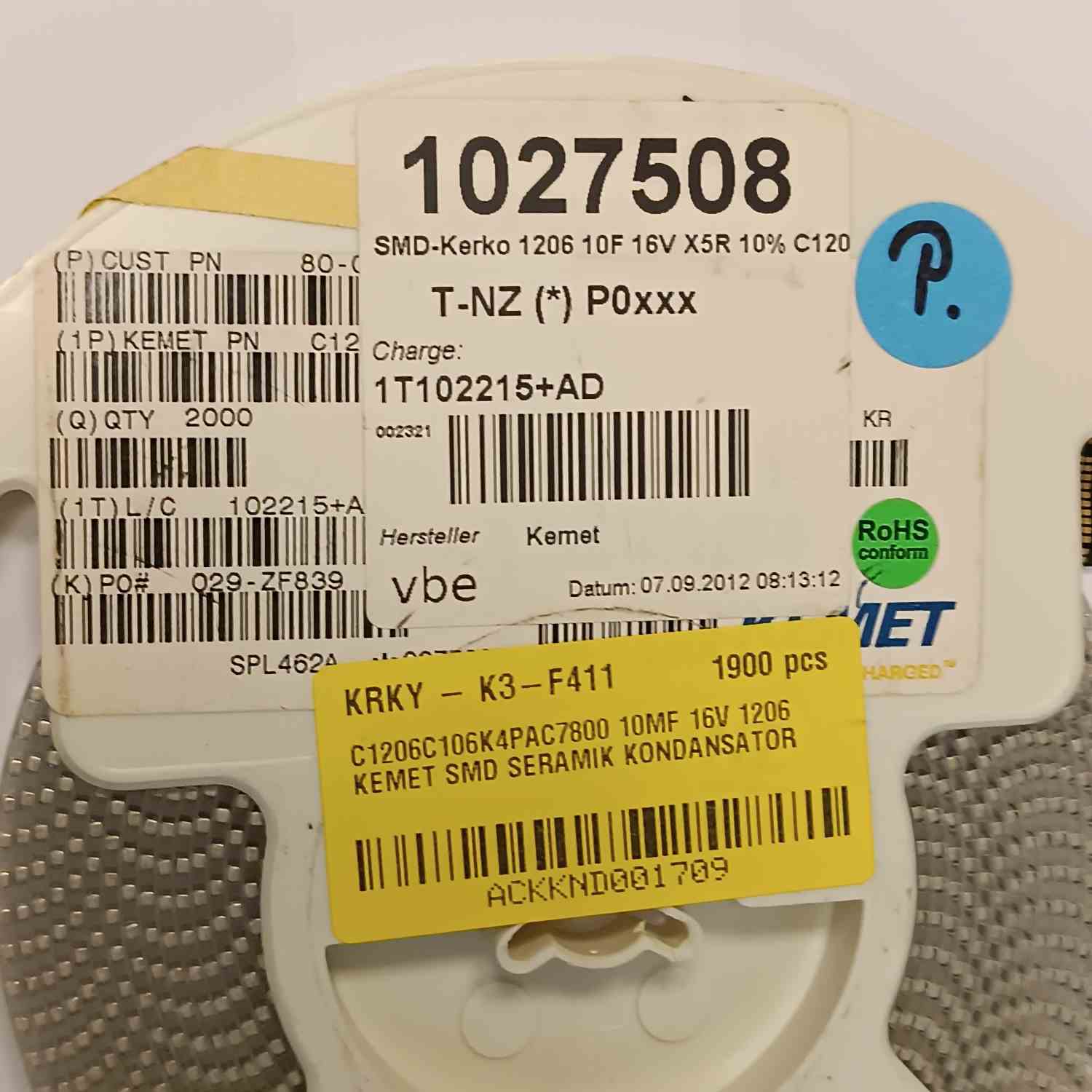 C1206C106K4PAC7800 10MF 16V 1206 KEMET SMD SERAMİK KONDANSATÖR