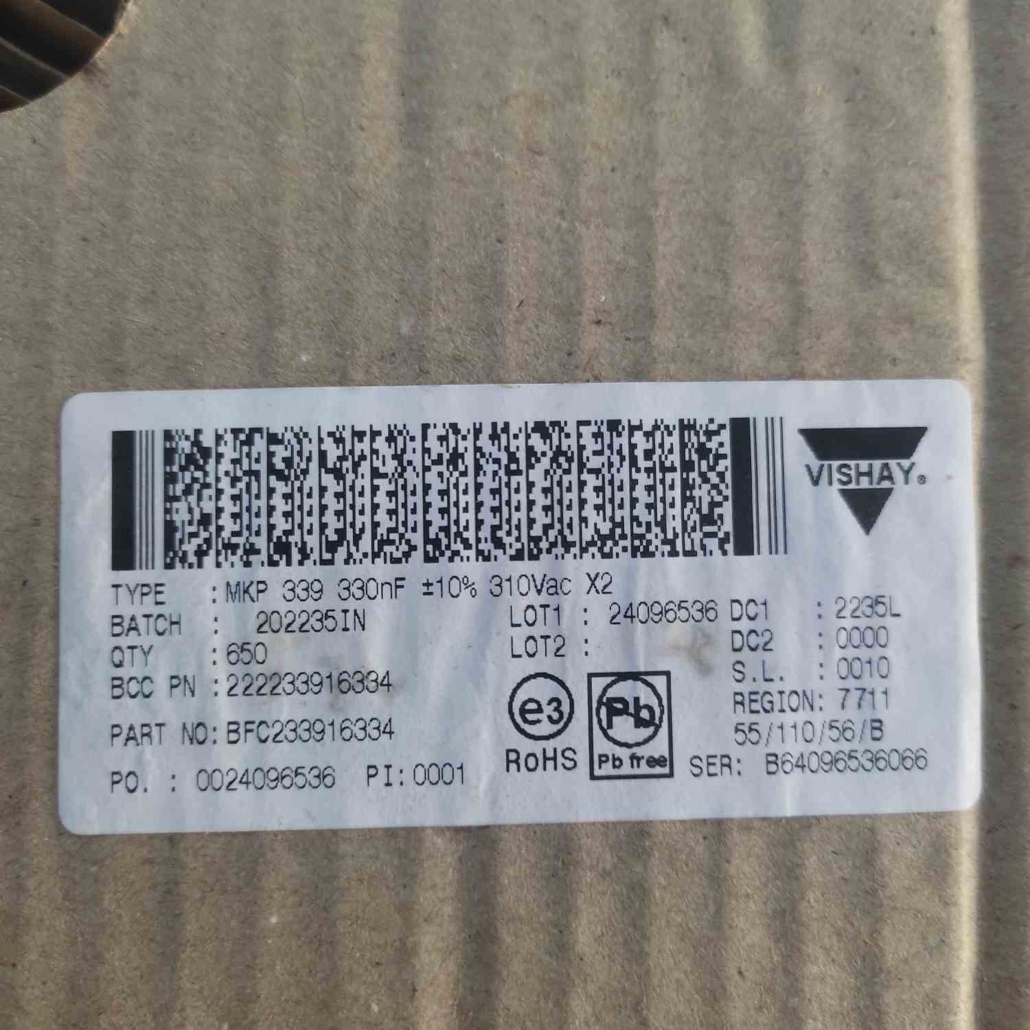 MKP339330NF310VAC 330NF 310V 15mm VISHAY