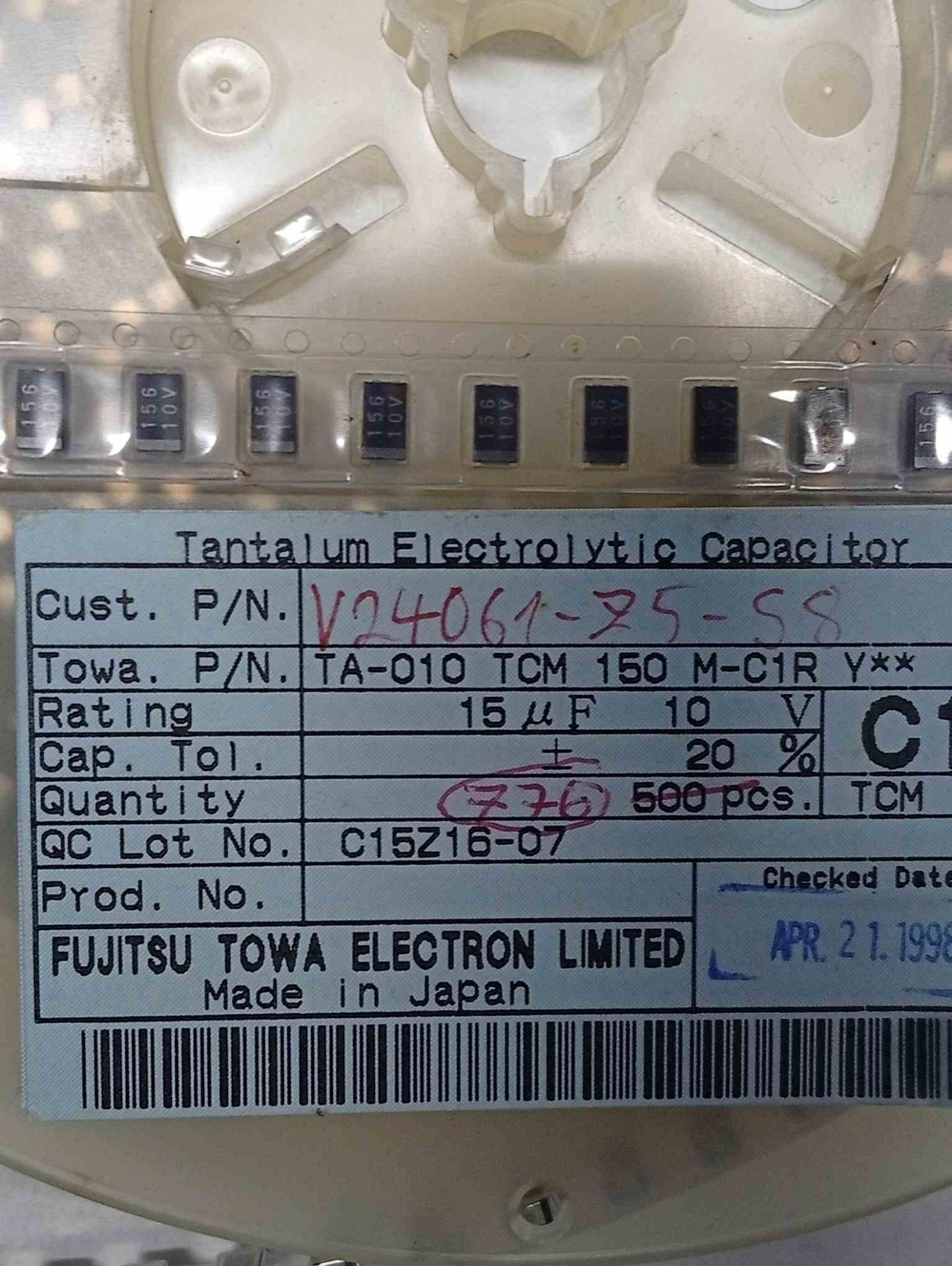 TA010TCM150MC1R 15MF TANTAL KONDANSATÖR