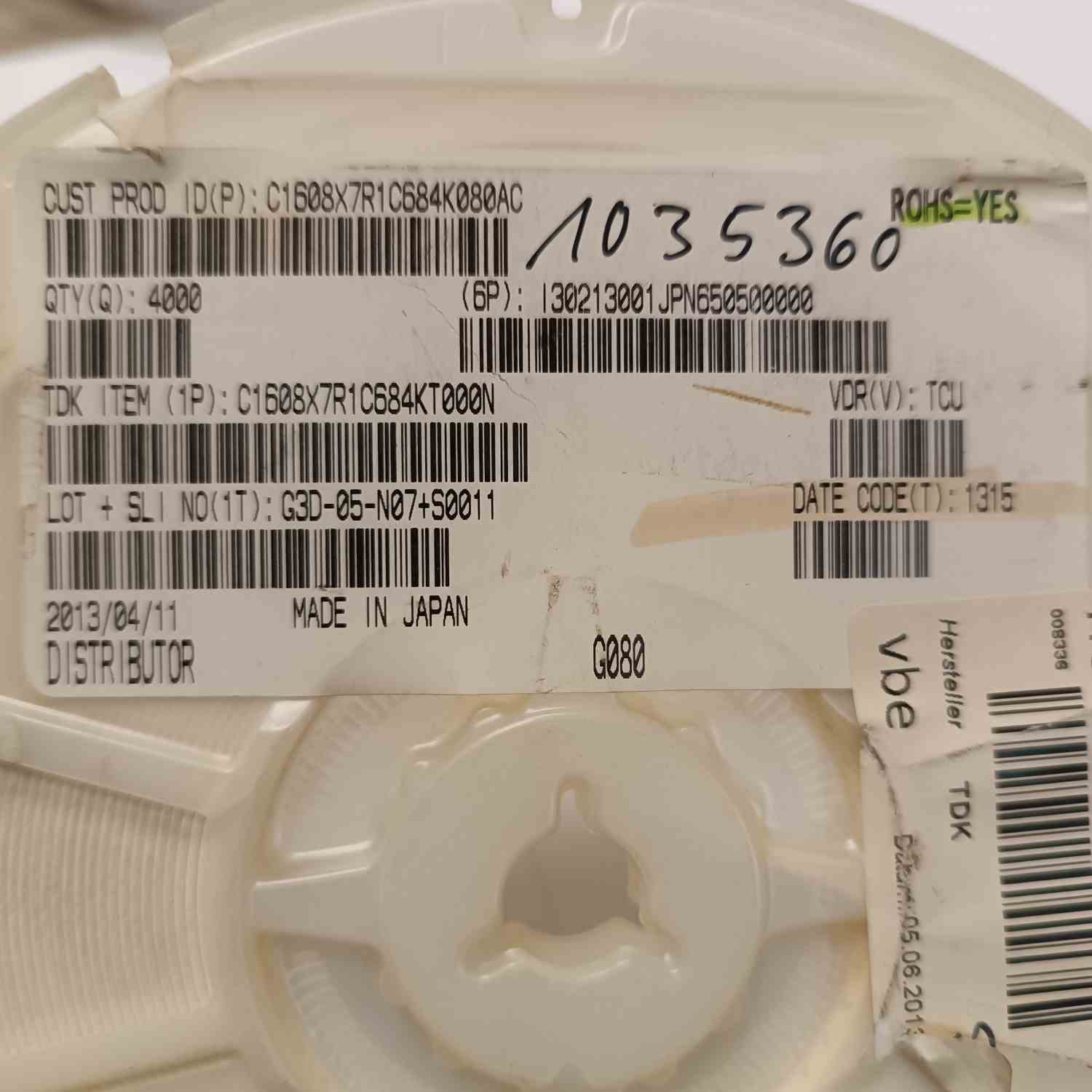 C1608X7R1C684K080AC 680NF 603 TDK SMD SERAMİK KONDANSATÖR
