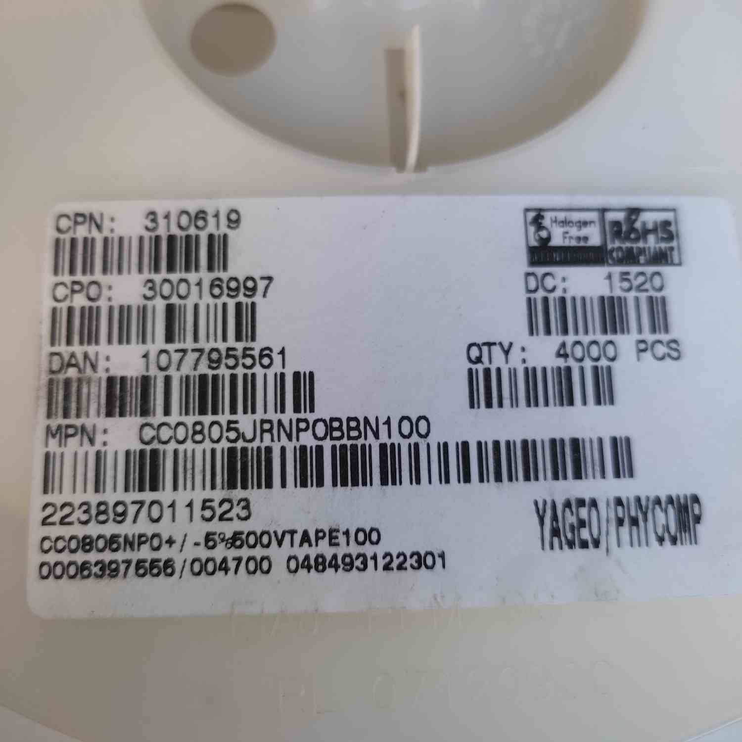CC0805JRNPOBBN100