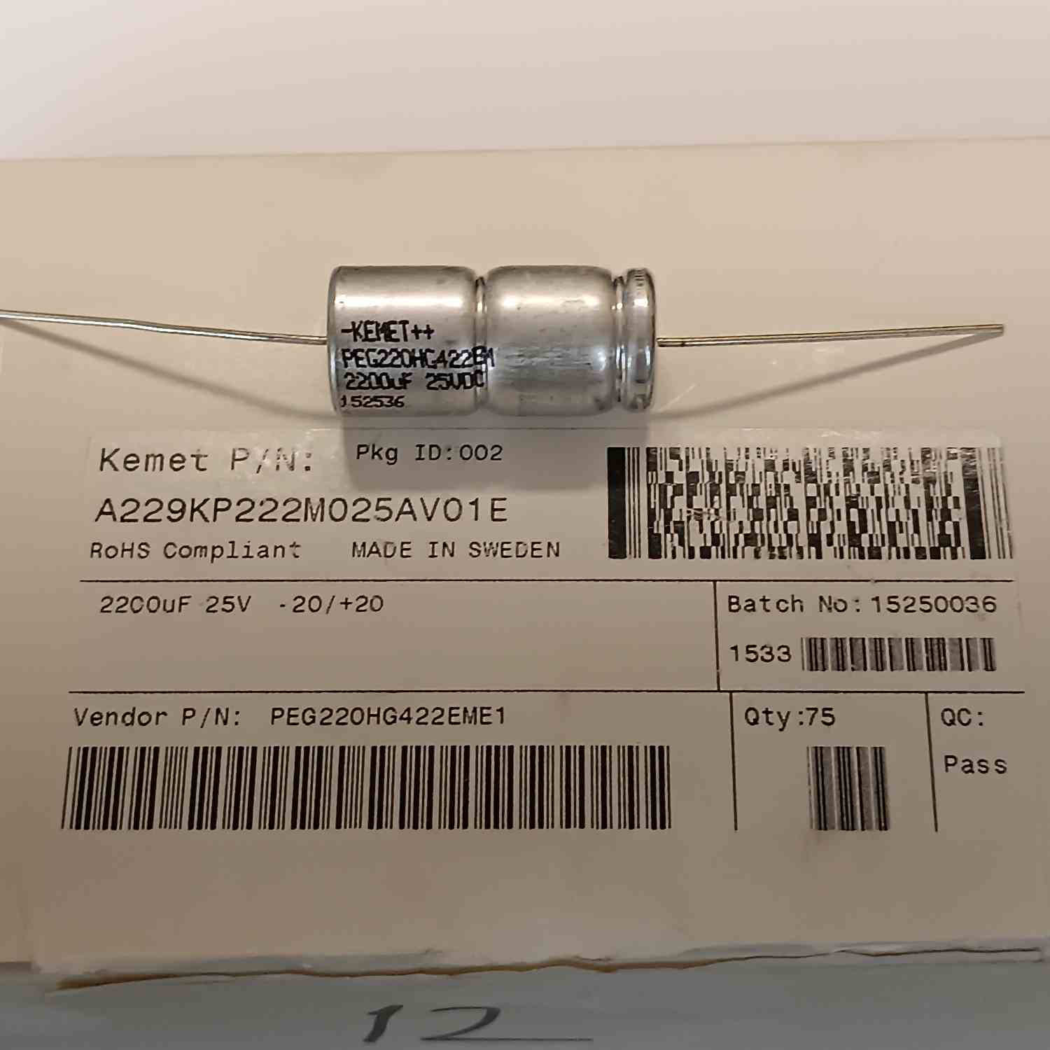 PEG220HG422EME1 2200MF 25V AXSİYEL KEMET AXIYEL KONDANSATÖR