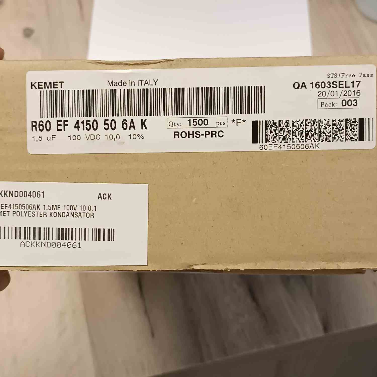 R60EF4150506AK 1.5MF 100V 10 0.1 KEMET POLYESTER KONDANSATÖR