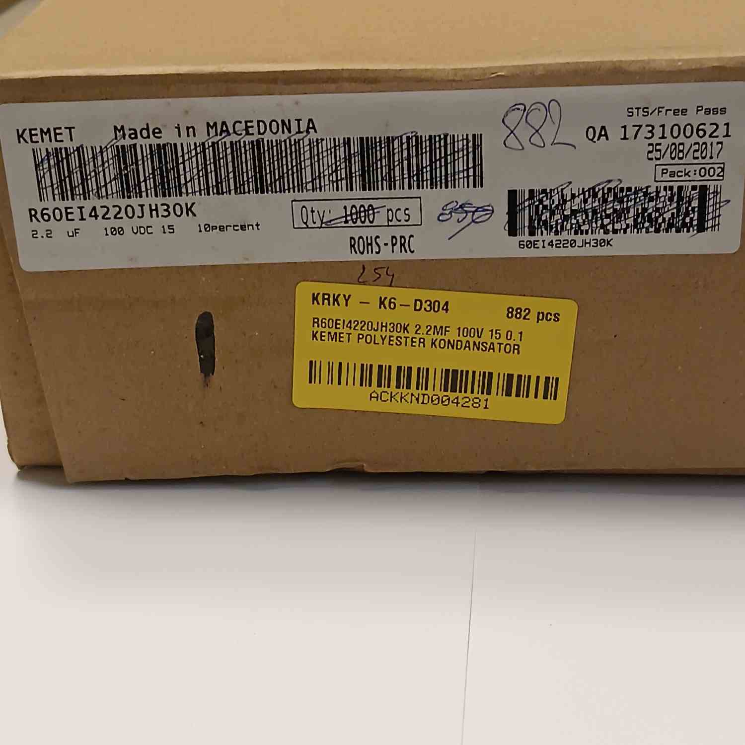 R60EI4220JH30K 2.2MF 100V 15 0.1 KEMET POLYESTER KONDANSATÖR