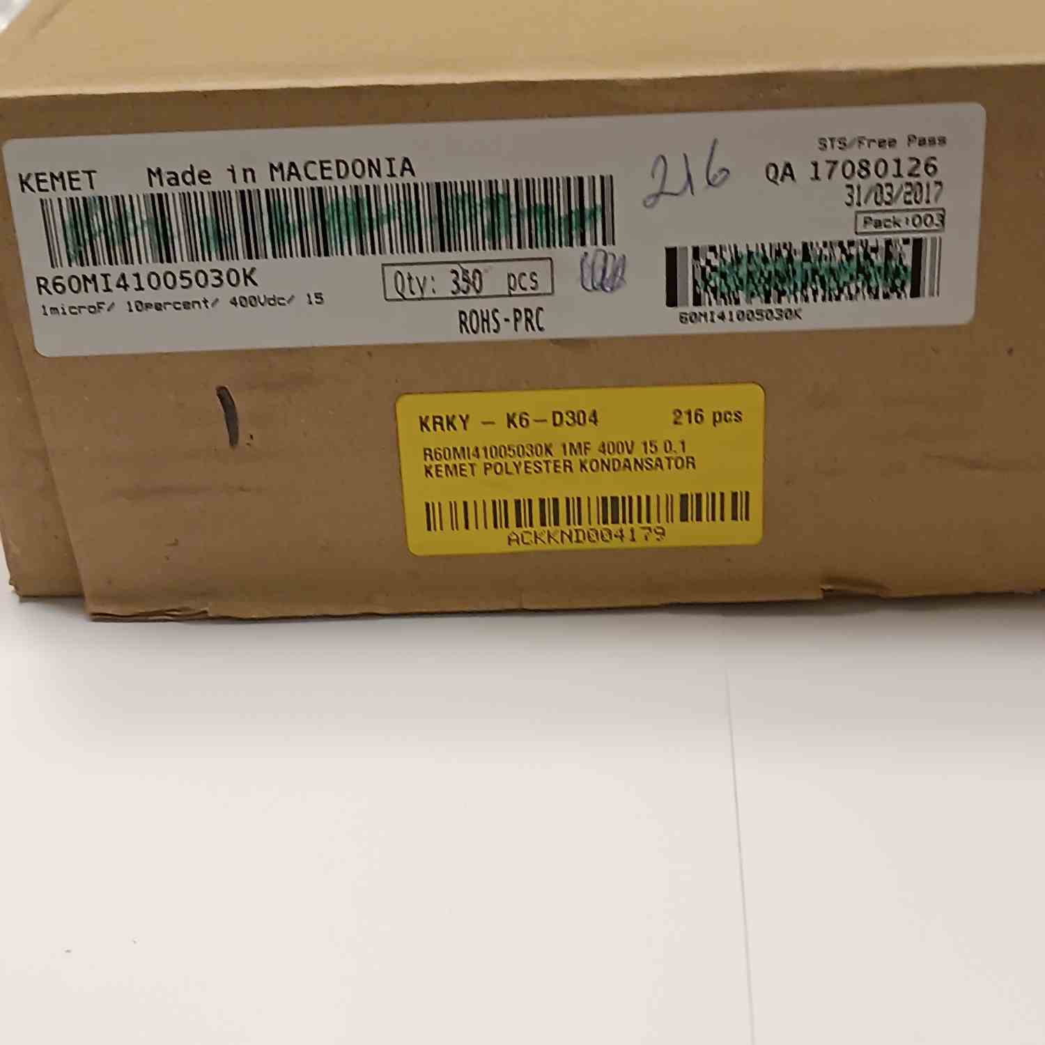 R60MI41005030K 1MF 400V 15 0.1 KEMET POLYESTER KONDANSATÖR