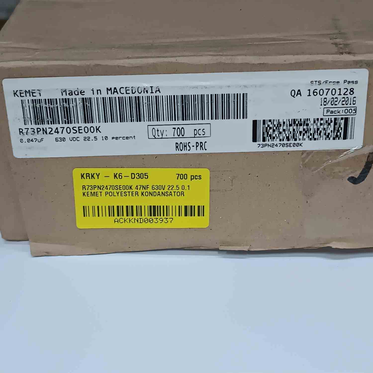 R73PN2470SE00K 47NF 630V 22.5 0.1 KEMET POLYESTER KONDANSATÖR