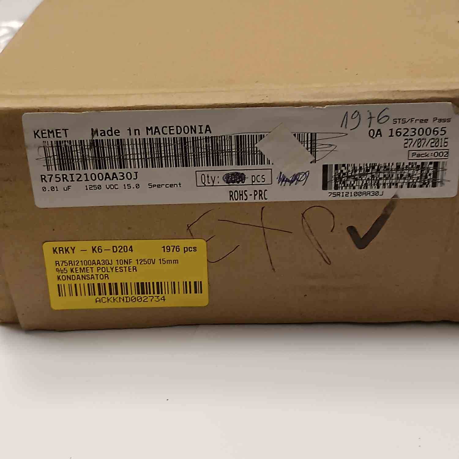 R75RI2100AA30J 10NF 1250V 15mm %5 KEMET POLYESTER KONDANSATÖR
