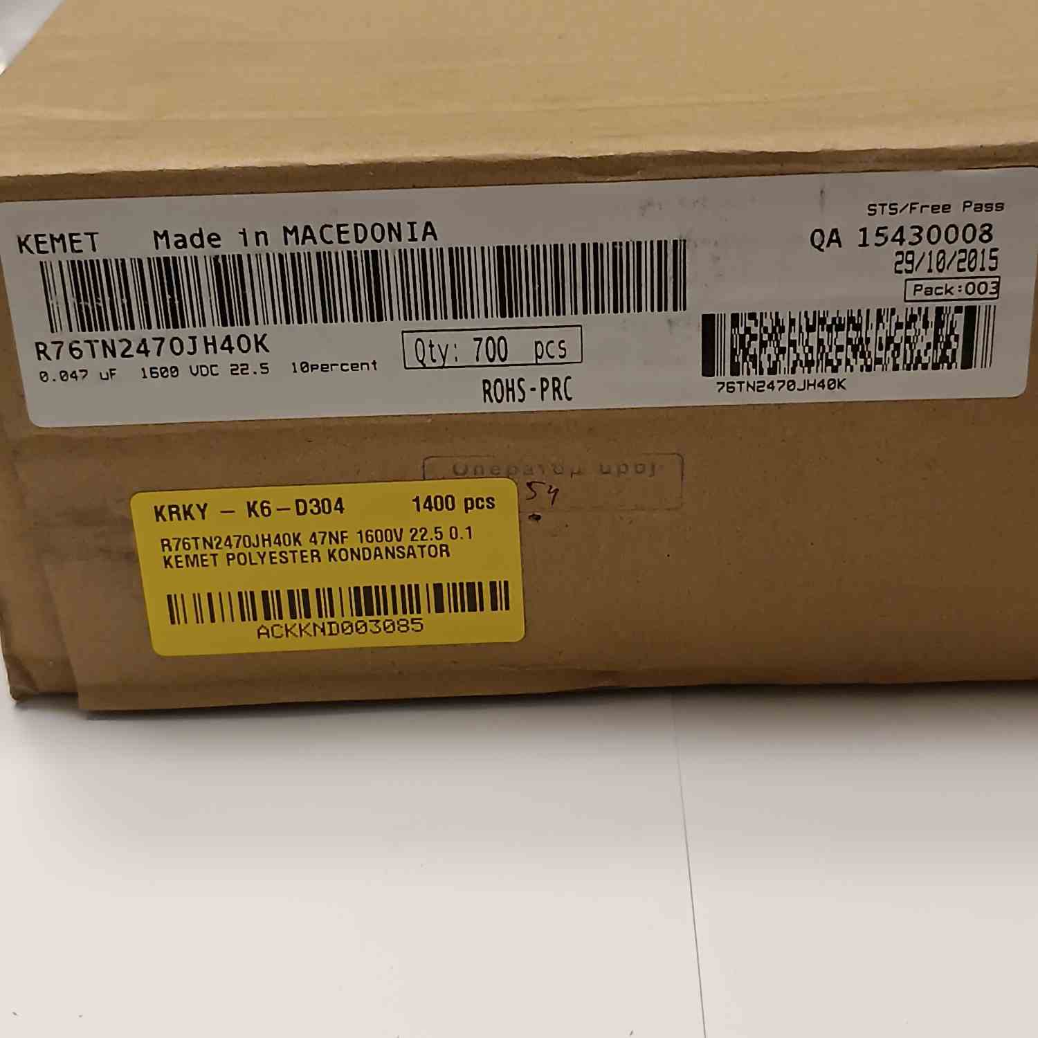 R76TN2470JH40K 47NF 1600V 22.5 0.1 KEMET POLYESTER KONDANSATÖR