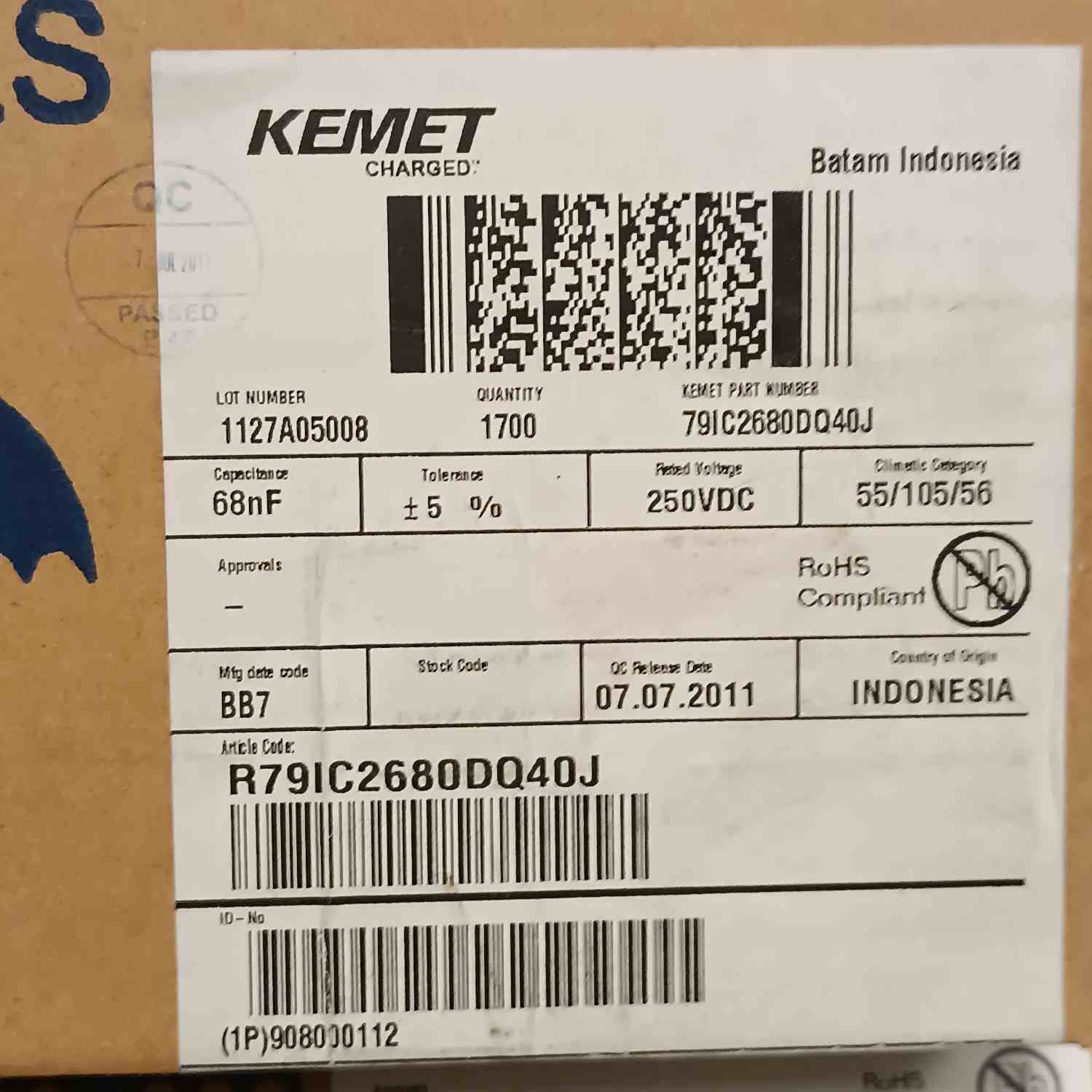 R79IC2680DQ40J 68NF 250V 5 0.05 KEMET POLYESTER KONDANSATÖR