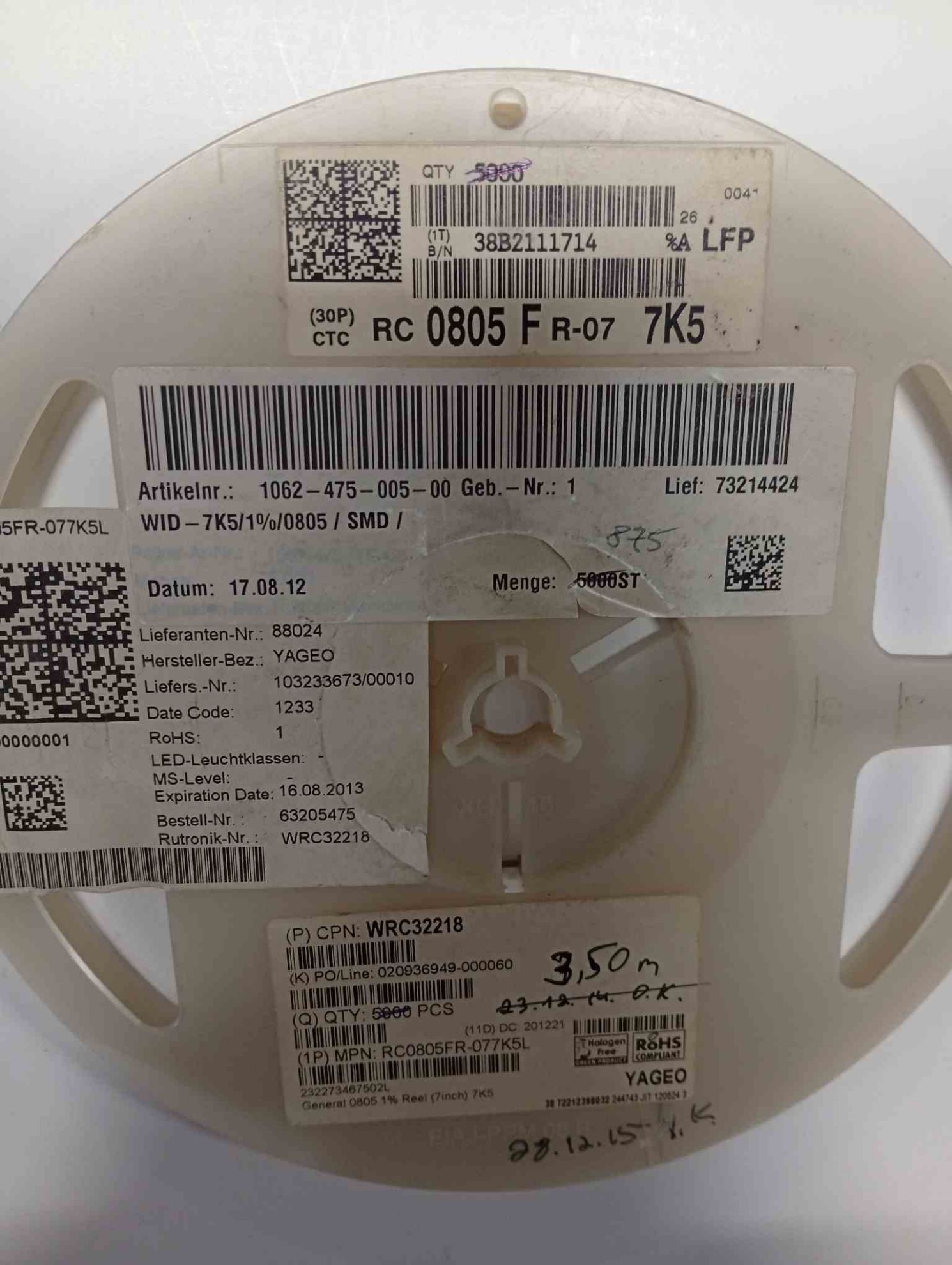 RC0805FR-077K5 7K5 805 YAGEO SMD DİRENÇ